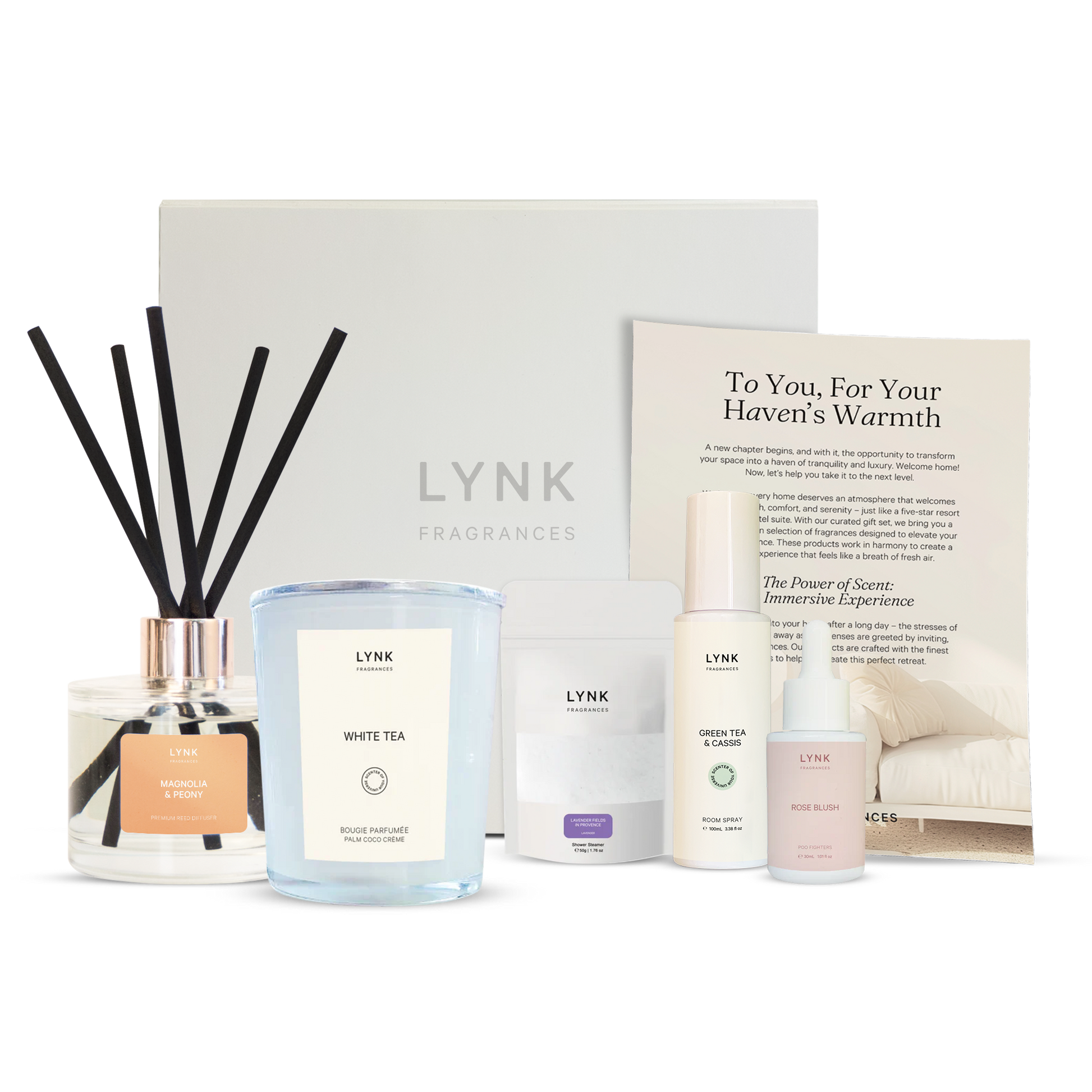 We believe every home deserves an atmosphere that welcomes you with warmth, comfort, and serenity – just like a five-star resort or a luxury hotel suite. With our curated gift set, we bring you a carefully chosen selection of fragrances designed to elevate your home’s ambiance. These products work in harmony to create a sensory experience that feels like a breath of fresh air.